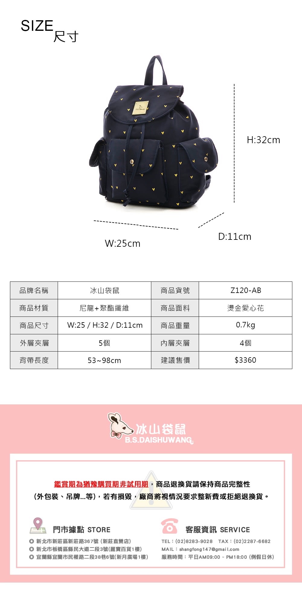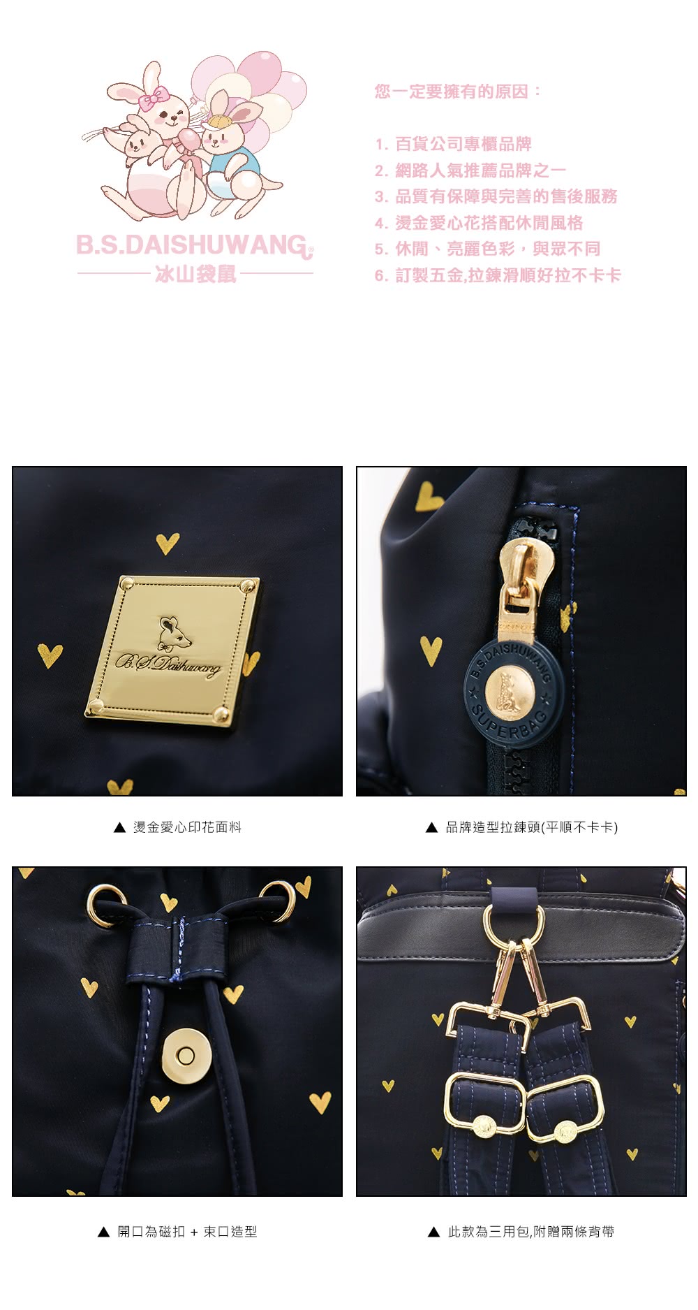 【冰山袋鼠】LOVE甜心糖-浪漫印花多夾層後背包-星彩藍(Z120-AB)背帶會容易斷掉嗎包包容易破掉嗎還有什麼缺點需要注意