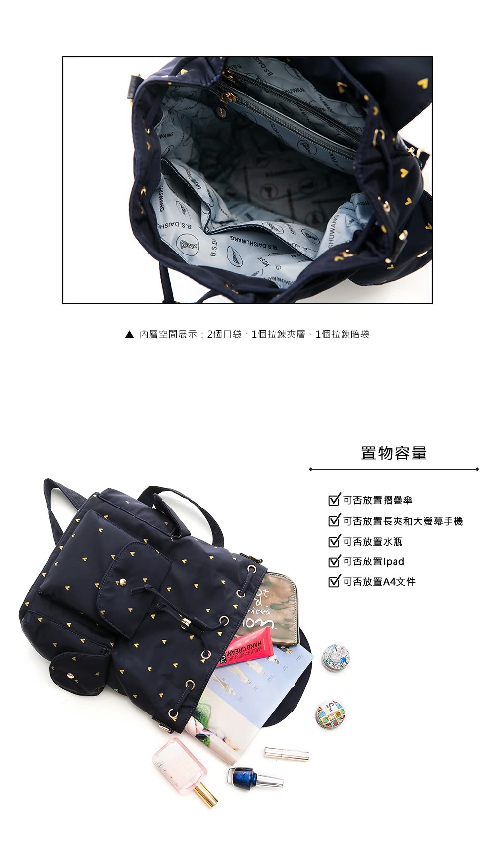 【冰山袋鼠】LOVE甜心糖-浪漫印花多夾層後背包-星彩藍(Z120-AB)質料好嗎可以當登山背包嗎可以當書包嗎